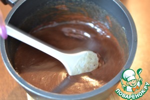 В еще горячую массу добавить поломаный шоколад. Мешать, чтобы шоколад полностью растаял.