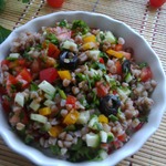 Очень простой в приготовлении сытный овощной салат! Обычная, всем известная гречневая крупа в сочетании с ярким набором овощей и ароматной зелени становится очень интересной! Такой салат сможет украсить семейный ужин, а может выступить и как вполне самостоятельное блюдо!