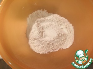 В одной посуде смешиваем муку, соду, соль и разрыхлитель теста (смесь №1).