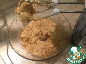 В другой посуде взбиваем масло и арахисовую пасту, добавляем яйцо и сахар (смесь №2).