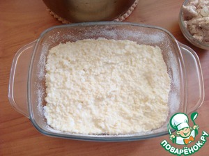 Присыпаем форму манкой. Можно сухарями, у меня их не оказалось.