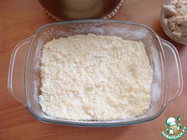 Выкладываем вторую половину пшена с творогом и яйцом. Ставим в духовку на 30 минут при т-180 С.