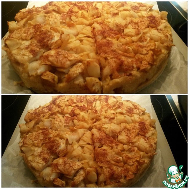 Если вы после выпечки, захотите посыпать верх пирога сахарной пудрой, то тогда последний слой яблок не стоит посыпать сахаром. -