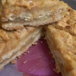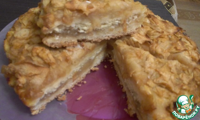 Сегодня испекла этот пирог. Очень вкусный получился и тесто вкусное, рассыпучее . Но не такой воздушный как у автора , а просто тоненький 2 см высотой . Смешав все ингридиенты добавляла муку постепенно . Ушло 200 -300 грамм. Если бы 400-450 гр. муки как описано всыпала - не вымешался бы никогда и был бы как подошва. Так что с количеством муки поосторожнее в песочном тесте. Вот только не пойму второй верхний слой теста или не пропёкся или пропитался соком яблок -помоему яблоки были чересчур сочные. Испеку ещё раз- понравился мне пирог и идея !