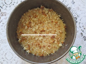 Раскатать второй пласт теста, положить его на яблочный слой, посыпать панировочными сухарями и накрыть оставшимися яблочными "лепестками".