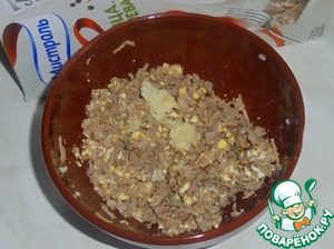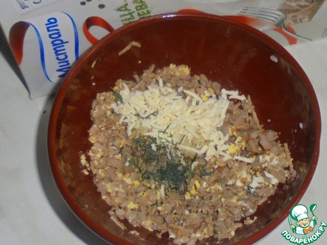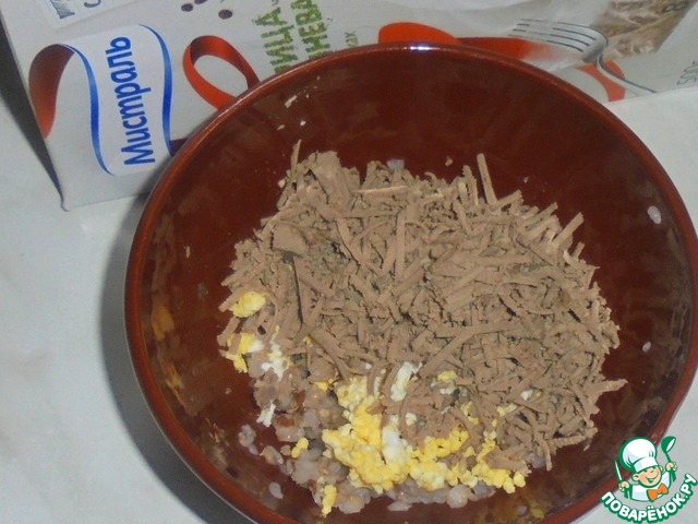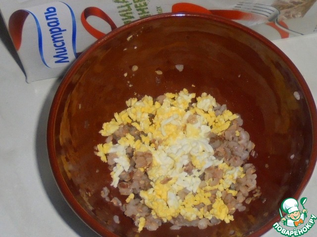 Яйцо чистим и натираем на мелкой терке. Перемешиваем.