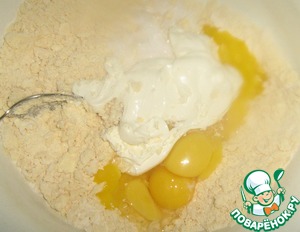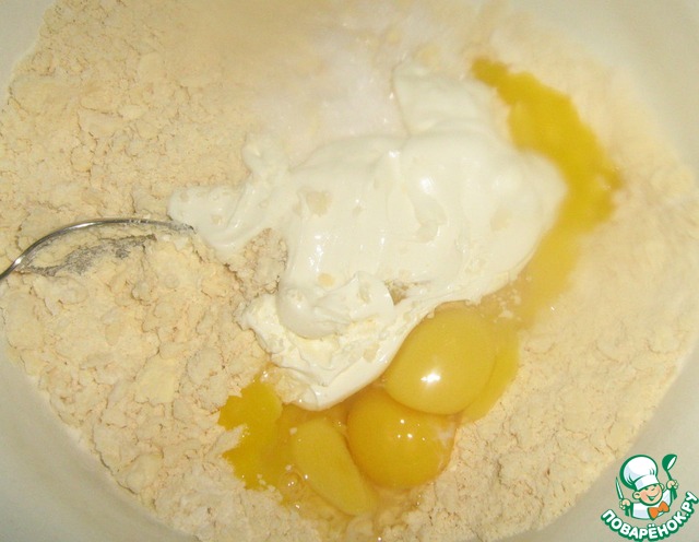 Замесить тесто, подсыпая муку. Поместить в холодильник на 30 мин.