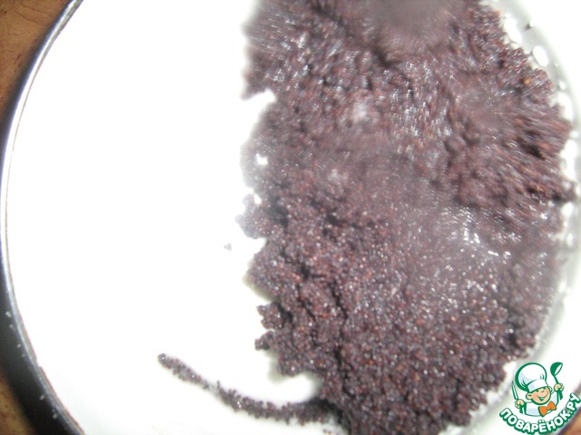50 грамм мака запарить кипятком, подождать, пока мак впитает всю жидкость. Потолочь его в ступке.