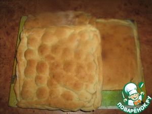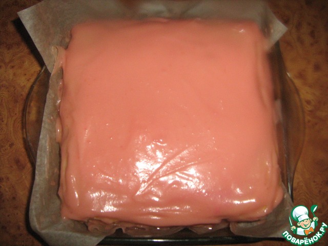 При этом, каждый раз дно и борта формы выстилать бумагой для выпечки, можно той же самой, на которой выпекался первый корж. -