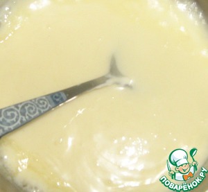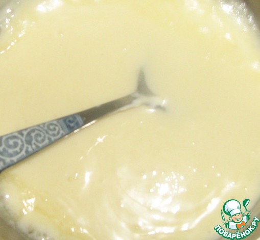 Сметану соединить с сахаром, варить на медленном огне, помешивая, 7 минут.