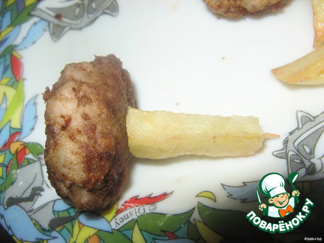 С помощью зубочистки, скрепить "ножку" из картофеля со "шляпкой" из котлетки.