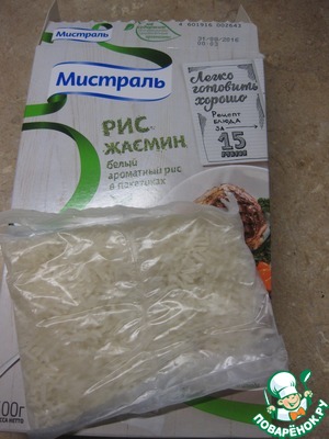 Теперь берем пакетик ароматного риса Жасмин от Мистраль и варим согласно инструкции на упаковке.