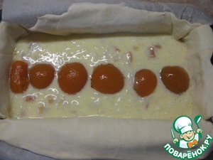 Поверх начинки по центру выложить половинки абрикос