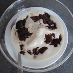 Выкладываем крем в пиалы и сверху поливаем уже загустевшим к этому времени шоколадным соусом. -