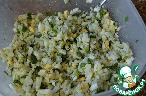 Смешать, начинка готова. В таких пирожках начинка должна быть не жидкой.