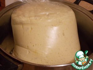 Для расстойки его кладу в пакет и перед этим его ( пакет) смазываю внутри растительным маслом). Но это не обязательно, можно просто в миске держать.