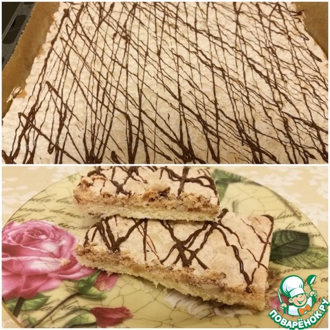 Сверху выкладываем белково-ореховую смесь. Ставим в разогретую до 180 градусов духовку на 25-30 минут.