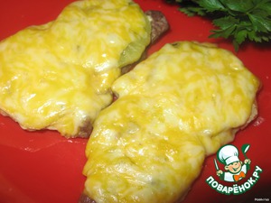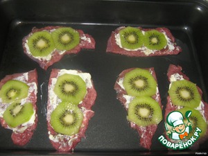 Мягкое отбивное мясо с сочным киви, запеченное под сырной "шапкой". Очень вкусно!!!