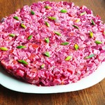 А сверху немного отварной тертой свеклы и на неё узор из майонеза.