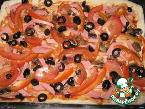 Для всех любителей пиццы! Тонкое тесто с вкусным наполнителем! Обожаю пиццу, рекомендую попробовать приготовить ее моим способом))) Любим с мужем в выходные дни за просмотром кино покушать пиццы)))