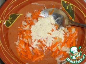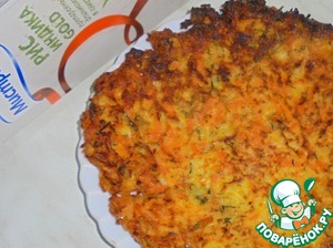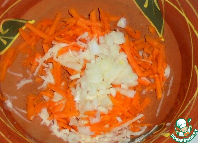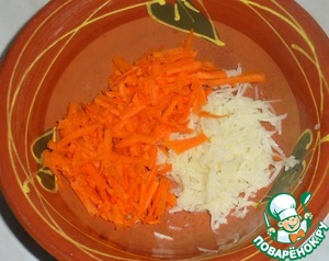 • Морковь и картофель очистить. Натереть морковь на крупной терке, а картофель на мелкой. Смешать.