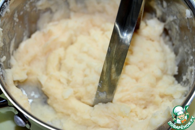 Приготовить картофельное пюре с добавлением указанного количества сливочного масла. Осторожно, чтобы не свернулось, вбить в пюре сырое яйцо, хорошенько перемешать, чтобы не было комочков. Оставить пюре остывать. Тут один нюанс - в зависимости от сорта картофеля может понадобиться немного муки в пюре для связки, но обычно обхожусь без муки.