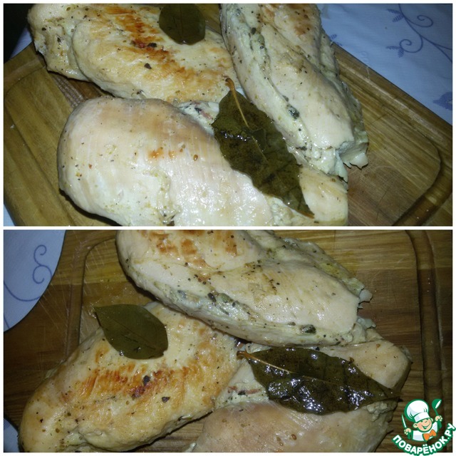 По истечении времени маринования, достаём курицу из холодильника и оставляем её на один час отлежаться при комнатной температуре.