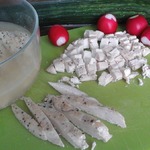 Куриное мясо приготовленное таким способом, в концентрированном сладко-солёном бульоне, существенно отличается по своей структуре и вкусовым качествам от мяса, приготовленного традиционным способом варки с использованием большого количества жидкости.
