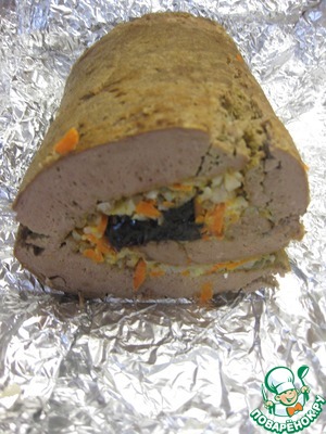 Рецепт «Рулет печеночный с гречкой и черносливом»: