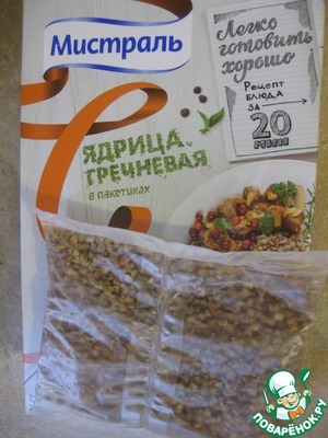 Пакетик гречки ( у меня от Мистраль) поставим варить, согласно инструкции на упаковке