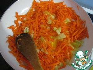 На разогретой сковороде, с добавлением масла, обжарим наши овощи до мягкости моркови