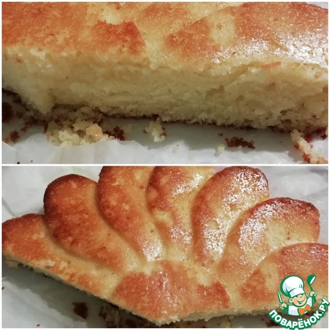 Затем уже оформляем остывший пирог в зависимости от желания и фантазии)) Например, можно посыпать пирог сахарной пудрой, а можно ничего не делать, а просто нарезать на порционные кусочки и приступать к поеданию))