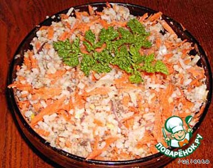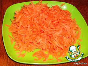 Морковь натереть на крупной терке (но не как для моркови по-корейски - стружка должна быть короткая).