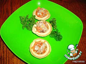 Теперь этим салатом начиняем тарталетки. Приятно аппетита!