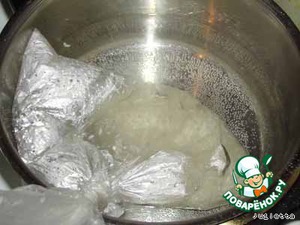 Рис отварить до готовности в подсоленой воде (я варю в проколотых вилкой полиэтиленовых мешочках).