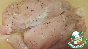 Солим, перчим, сбрызгиваем соком лимона. Мне хватило четвертинки крупного цитруса. Оставляем грудку мариноваться, а тем временем занимаемся гарниром.
