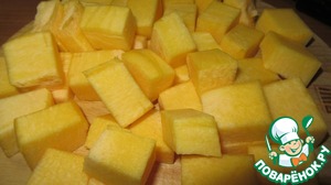 Тыкву режем довольно крупно, кусочками по 2-2, 5 см. Мельче не стоит, иначе она превратиться в пюре.