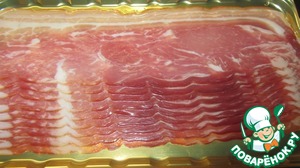 Распечатываем упаковку бекона. Здесь должна сказать, что с грудинкой моим домашним это блюдо нравится больше, говорят - сочнее.