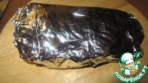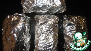 То, что получилось - дважды плотно оборачиваем фольгой, иначе во время запекания сок может вытечь. Таким же образом делаем ещё одну диетическую порцию.
