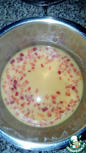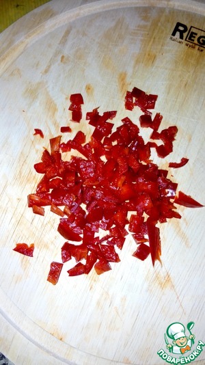 Болгарский перец вымыть, очистить от семян и нарезать кубиками.
