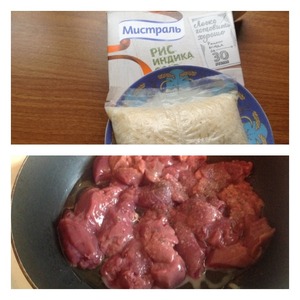 Пакетик риса отварить в подсоленной воде согласно инструкции на упаковке. Куриную печень нарезать небольшими кусочками и обжарить в небольшом количестве растительного масла на хорошо разогретой сковороде буквально минут 5. Готовый рис охладить.