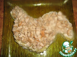 Внизу блюда сделать "траву" из зелени, "цветы" - из моркови.
