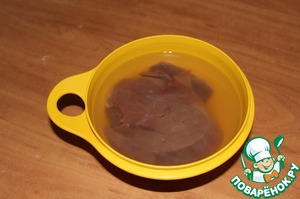 Сначала займемся печенью. Я обычно готовлю из говяжей, но подойдет и свиная. Сначала печень нужно хорошо промыть и вымочить в воде минут на 20, меняя несколько раз воду.