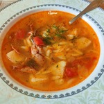 3 Добавляем зажарку в суп, кладем лавровый лист, солим и варим до готовности, пока картофель не станет мягким. Затем кладем в суп измельчённую зелень и накрываем крышкой.