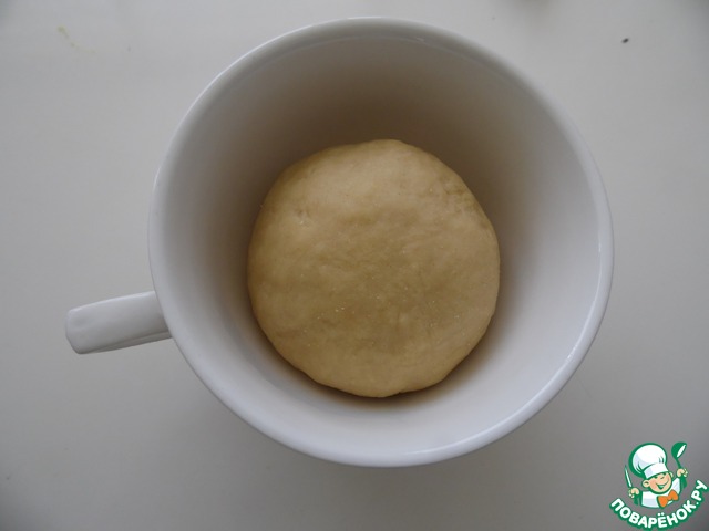 Вынуть тесто из холодильника Отделить от теста порцию остальное тесто завернуть снова в плёнку. Раскатывать тесто скалкой на припылённой мукой доске. Тесто нужно будет не просто раскатывать, а растягивать скалкой от центра к краям, оно очень эластичное.