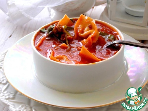 Рецепт «Итальянский томатный суп с тортеллини и шпинатом»: