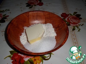 Готовим посыпку для булочек. Перетираем в крошку маргарин, сахар и муку.