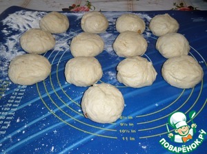 На рабочей поверхности тесто делим на 12-13 частей. Придаем форму.
