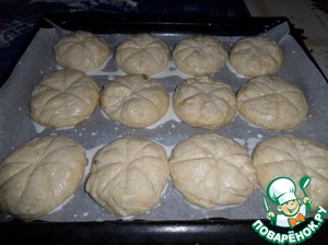 Выкладываем на противень, застеленный пергаментом. Ножом наносим рисунок.