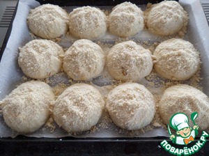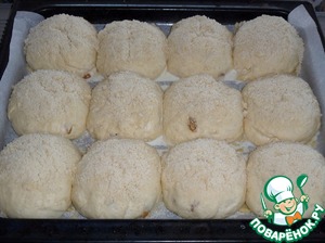Посыпаем приготовленной посыпкой. Оставляем на 15-20 минут для подъема, накрыв полотенцем.